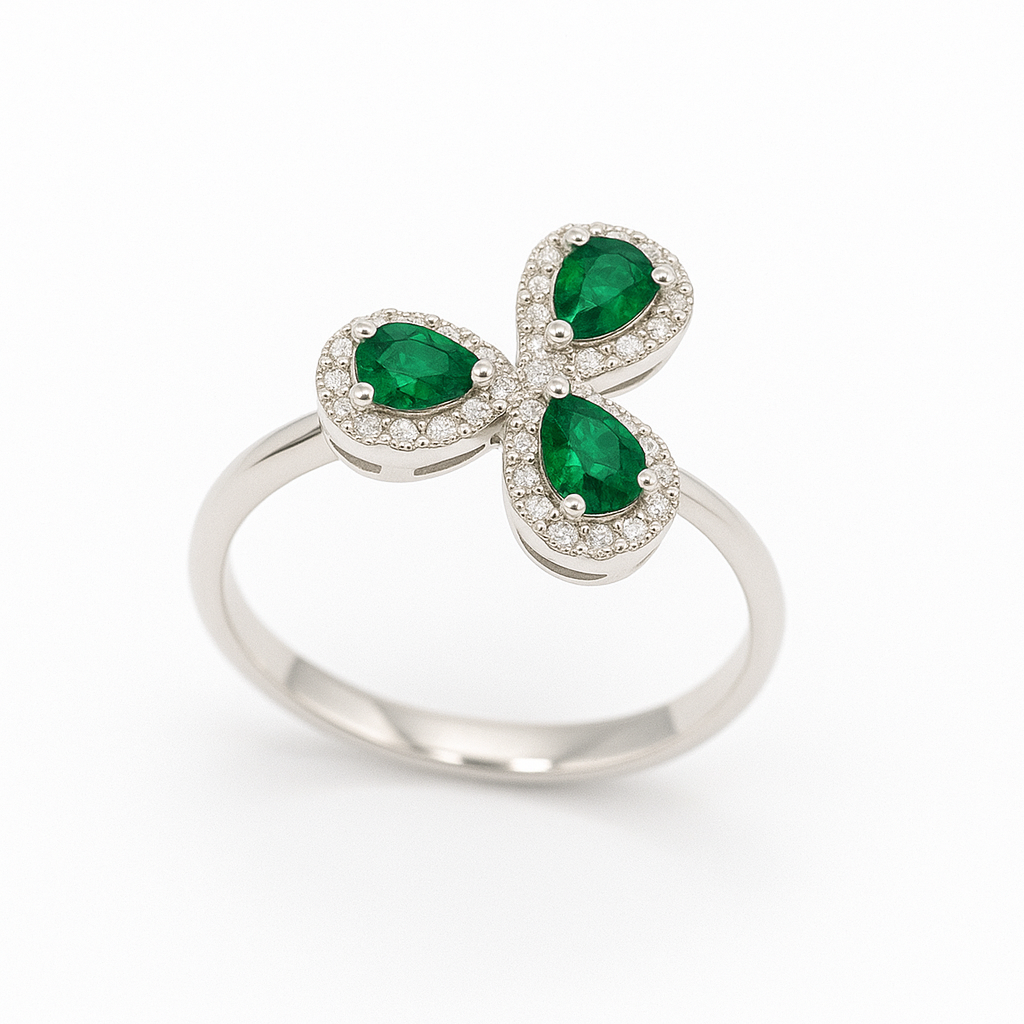 Anello in oro 9 carati con tre eleganti gocce e diamanti. Un design sofisticato che combina la purezza preziosa dell'oro con lo splendore dei diamanti, creando un gioiello versatile e raffinato. Perfetto per occasioni speciali o per chi apprezza la qualità artigianale e il dettaglio elegante. Un pezzo che valorizza la mano con stile senza tempo.